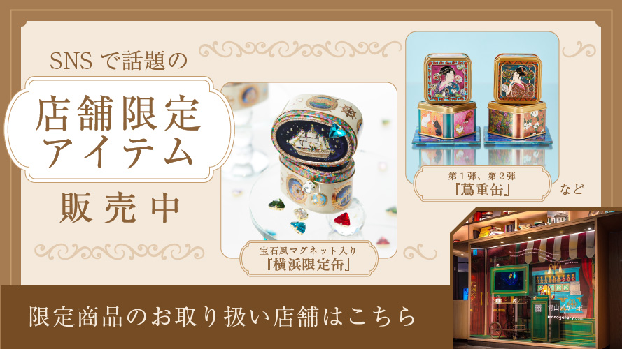●広島 蔦屋書店 1号館1Fギャラリー 2022年10月12日(水)-10月31日(月)まで 取り扱い商品:バレエシューズ付きネコ缶、ブローチ缶(くま缶)、ミニジュエルボタン缶 ●中目黒 蔦屋書店 2022年10月13日(木)-12月25日(日)まで 取り扱い商品:バレエシューズ付きネコ缶、東京限定くま缶、ミニくま缶 ●梅田 蔦屋書店 2022年11月1日(火)-12月25日(日)まで 取り扱い商品:バレエシューズ付きネコ缶、ミニくま缶、ミニジュエルボタン缶 ●枚方 蔦屋書店 2022年11月26日(土)-12月25日(日)まで 取り扱い商品:バレエシューズ付きネコ缶、ミニくま缶、ミニジュエルボタン缶 ※商品の数に限りがございますため完売の際はご容赦くださいませ。