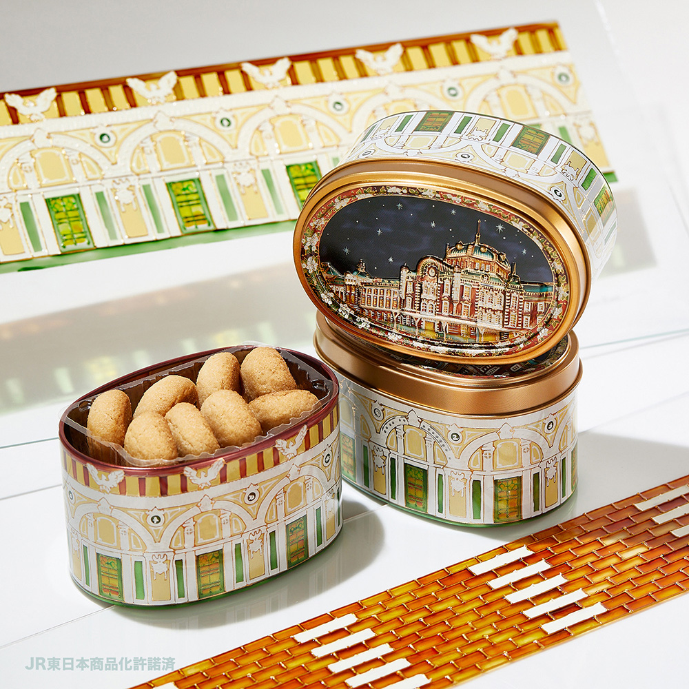 缶の中にかくれているのは、赤い化粧レンガの壁。歴史ある東京駅へのリスペクトをこめたお菓子缶です。