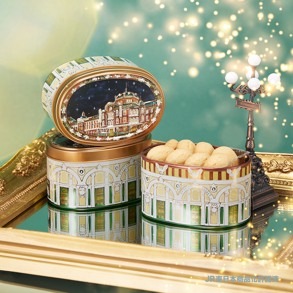 【東京限定】ガラス絵の東京駅をかたどったお菓子缶『東京駅缶』