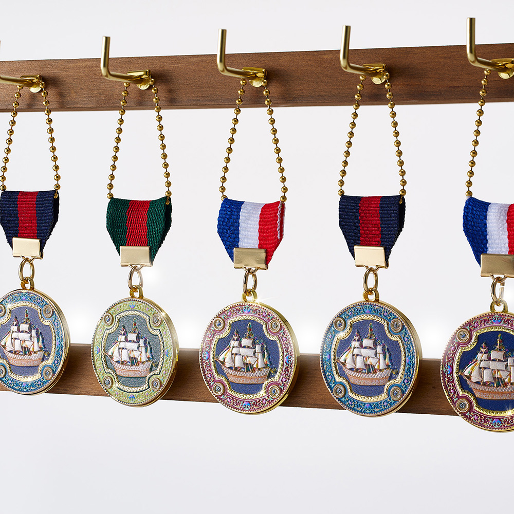 オリジナルメダルは、青山デカーボが金型からこだわって制作しました。帆船の細部に至るまでエンボス加工を施し、繊細でありながら重厚感のある仕上がりです。