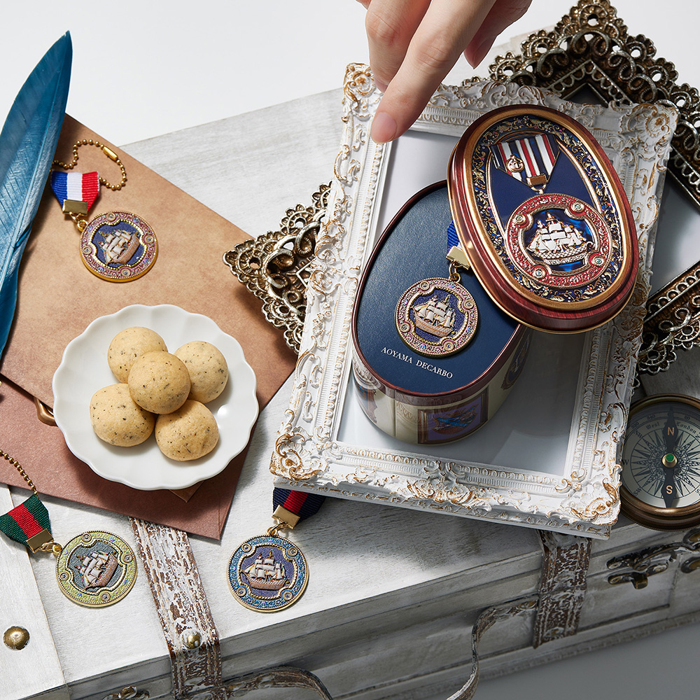『横浜限定缶2』のデザインコンセプトは、「港の記憶を閉じ込めたアンティークメダル缶」。港町としての横浜の歴史や記憶を、コレクション性のあるデザインに落とし込みました。
